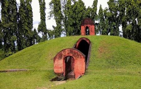 Lets take a dekko at the Charaideo Maidams of Assam, also known as the 'Pyramids of Assam' houses the burial grounds of several Ahom kings and queens. Considered very holy, there are about 42 tombs at the hill top of Charaideo. So yeah the kings were literally on top of the pyramid.