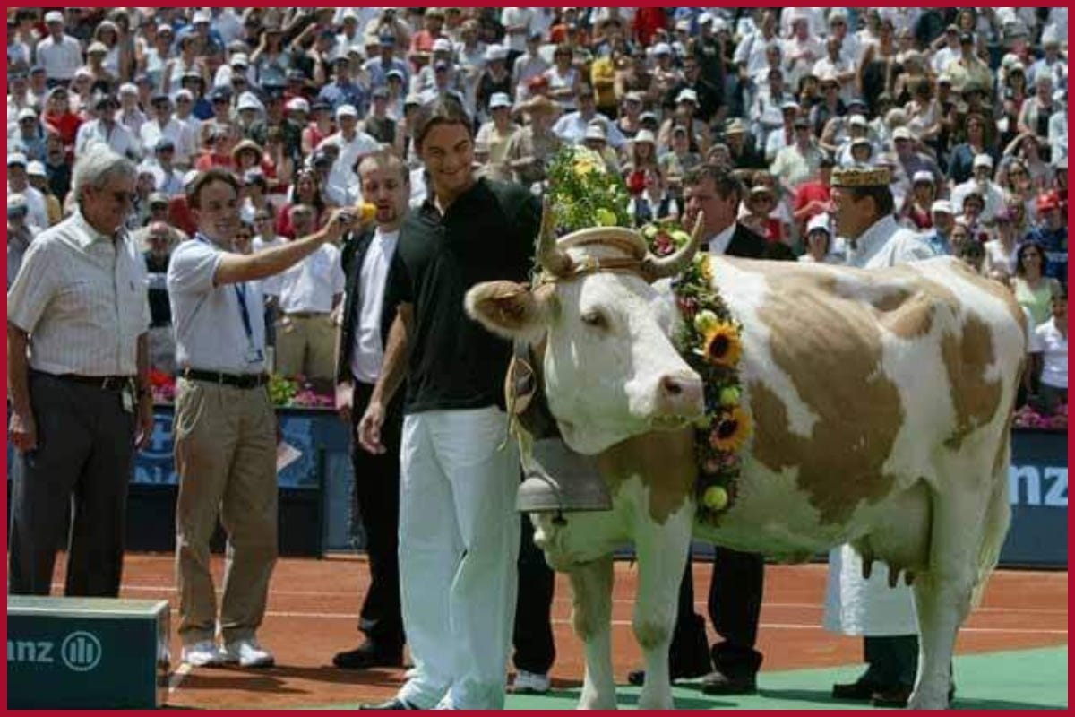 What is the most unusual gift that you have received? For Federer it is most likely to be Desiree and Juliette. When Federer took part in the Swiss Open in Gstaad just after winning his first Wimbledon title, the organisers thanked him for his appearance by giving him a cow - Desiree. Then in 2013, he took part in that tournament after a 9 year gap and they gifted him Juliette. Safe to say, that this was a high steaks performance.